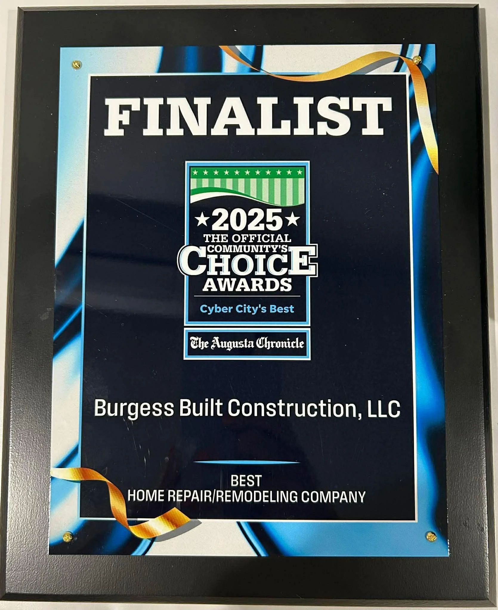 Burgess Built Construction is a trusted, locally owned construction company serving Augusta, GA and surrounding areas. Specializing in residential construction, home remodeling, full gut renovations, roofing, storm damage repair, and interior and exterior repairs, their team is known for quality craftsmanship, clear communication, and dependable project completion. Homeowners rely on Burgess Built Construction for projects that are properly managed, completed as promised, and finished with care from start to finish.